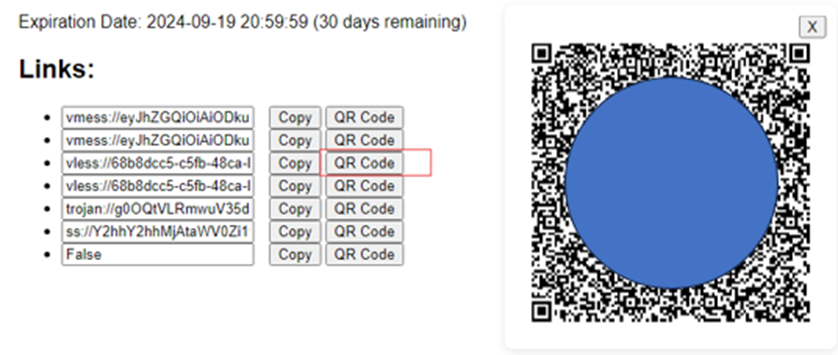 Нажимаем на странице подписки на любую кнопку «QR Code», появится сам QR-код.