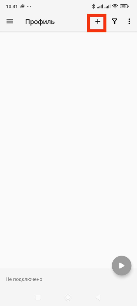 Запускаем программу и нажимаем плюсик (импорт из QR-кода)